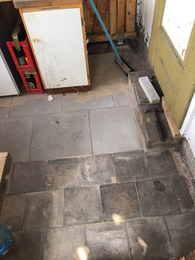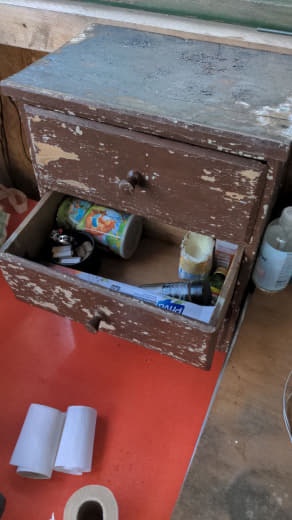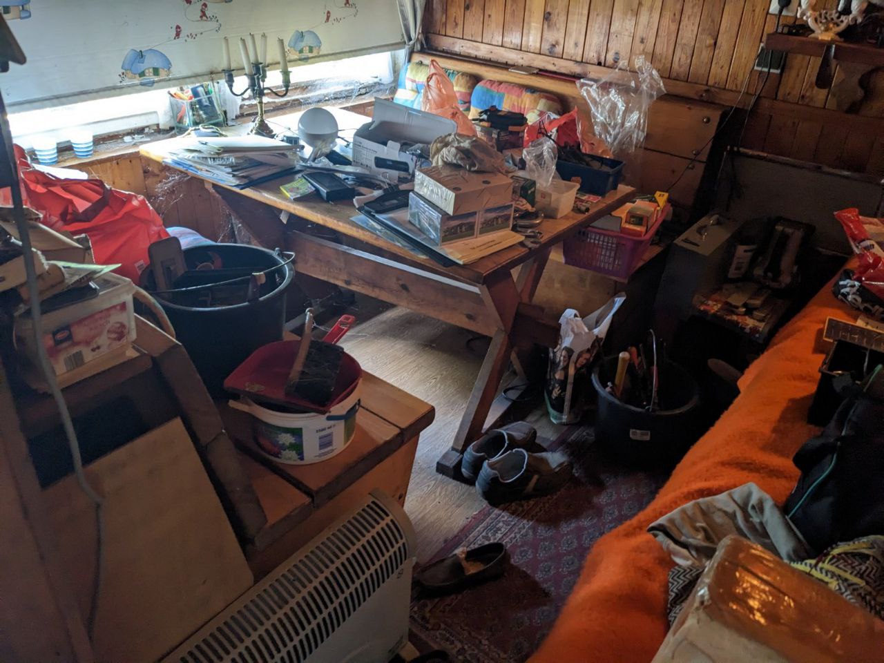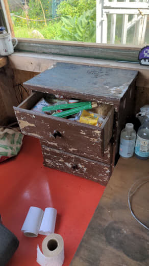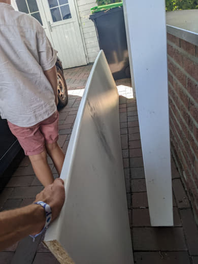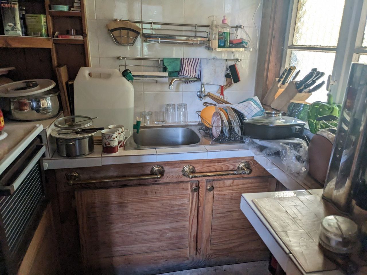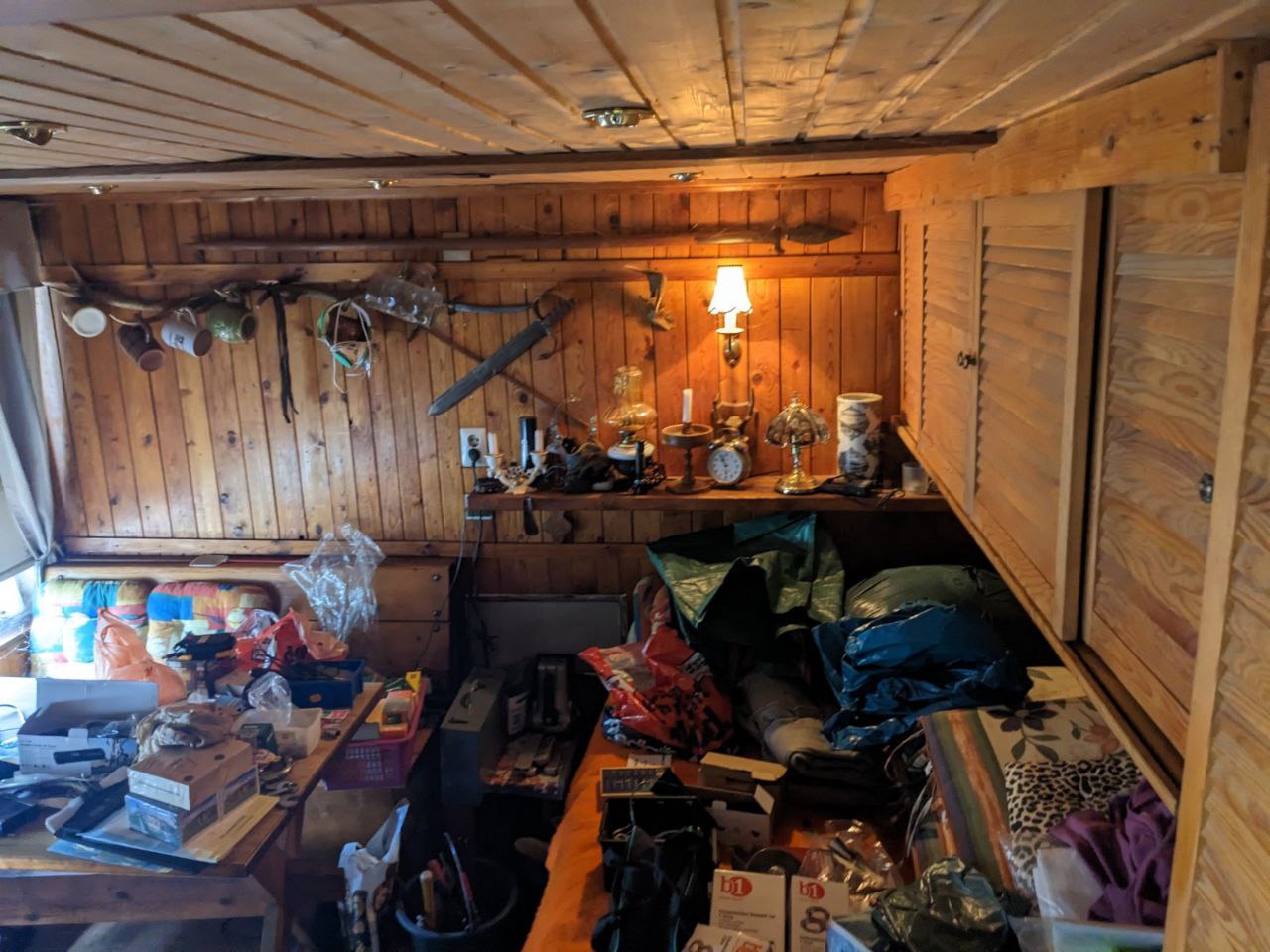 5. Küchenausbau: von vorne gesehen links soll eine Arbeitsfläche mit Fächern und Platz für den Kühlschrank untendrunter entstehen; Hinein könnte man Kunststoffboxen z.B. von Ikea stellen sodass Teller etc wasser-