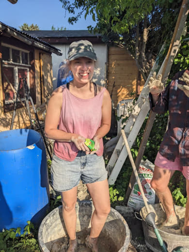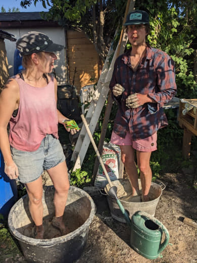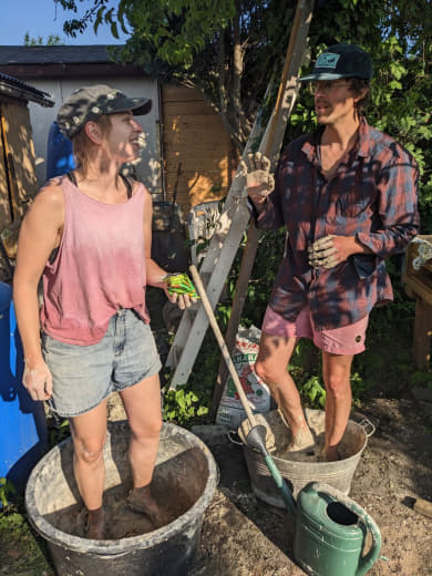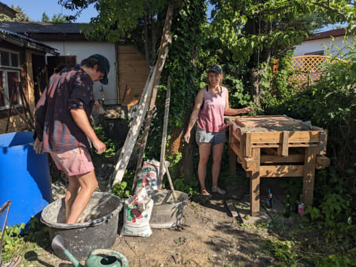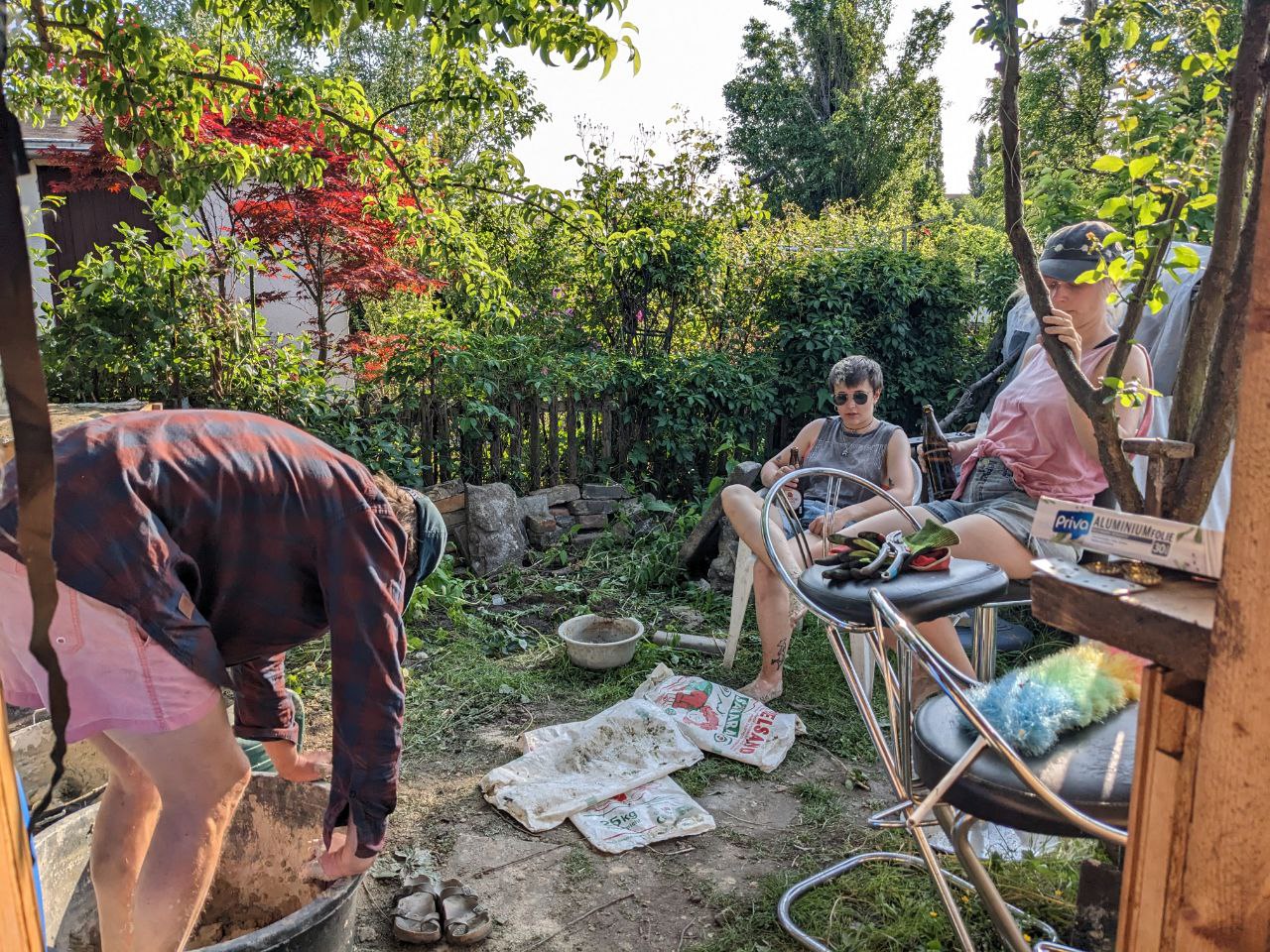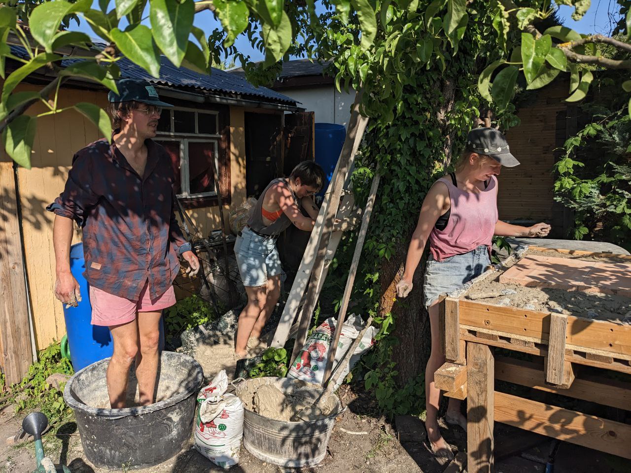 6. Regenrinnen müssen bis Herbst vervollständigt und mit Fallrohren und Sickergruben ausgestattet werden. Vermutlich 150 €, vermutlich im Herbst, Anthony versucht sich drum zu kümmern;